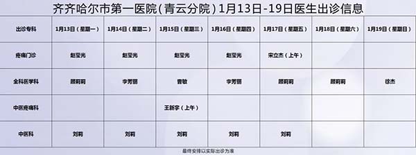 保障安全 护佑健康——齐齐哈尔市第一医院1月13日-1月19日出诊安排
