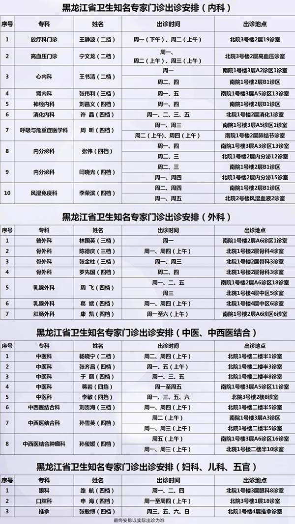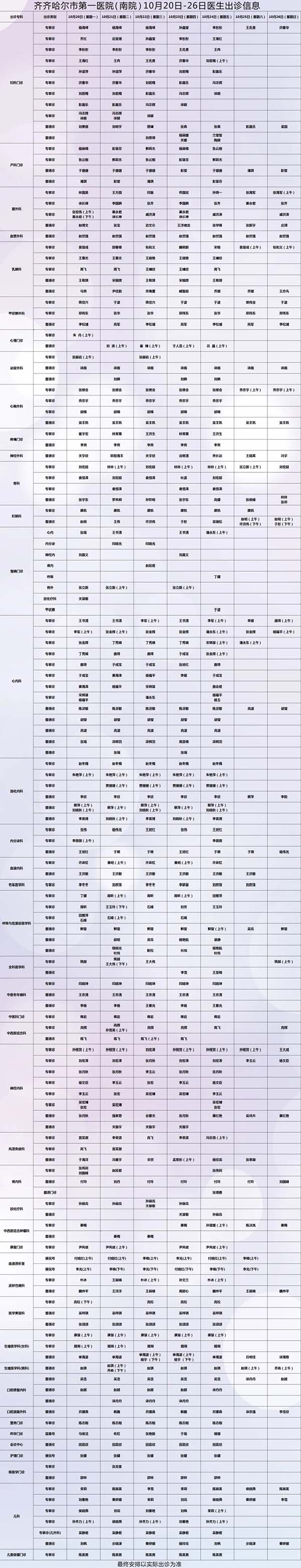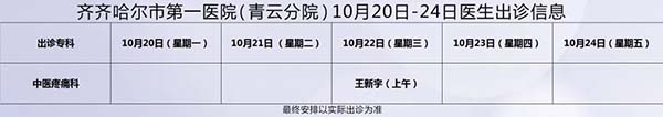 保障安全 护佑健康——齐齐哈尔市第一医院10月20日-10月26日出诊安排