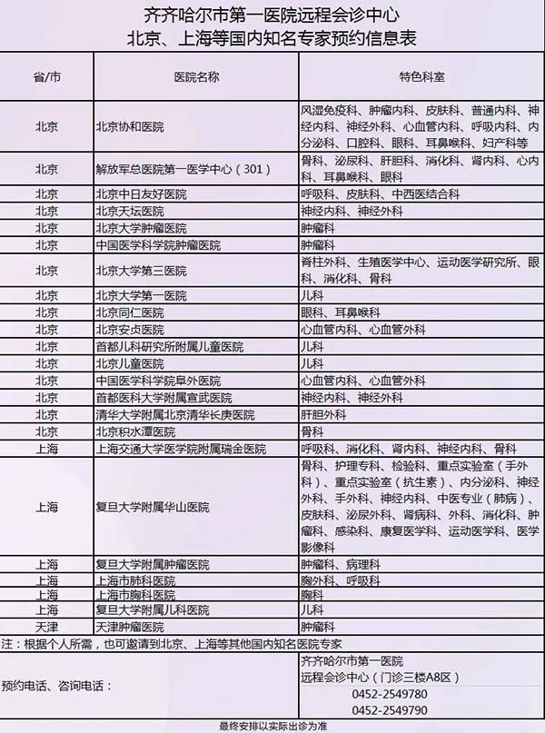 保障安全 护佑健康——齐齐哈尔市第一医院11月17日-11月23日出诊安排