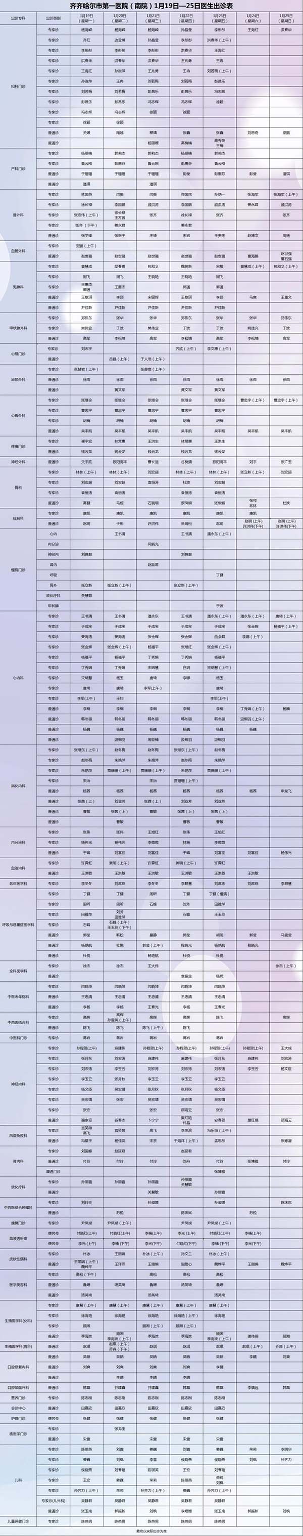 保障安全 护佑健康——齐齐哈尔市第一医院1月19日-1月25日出诊安排