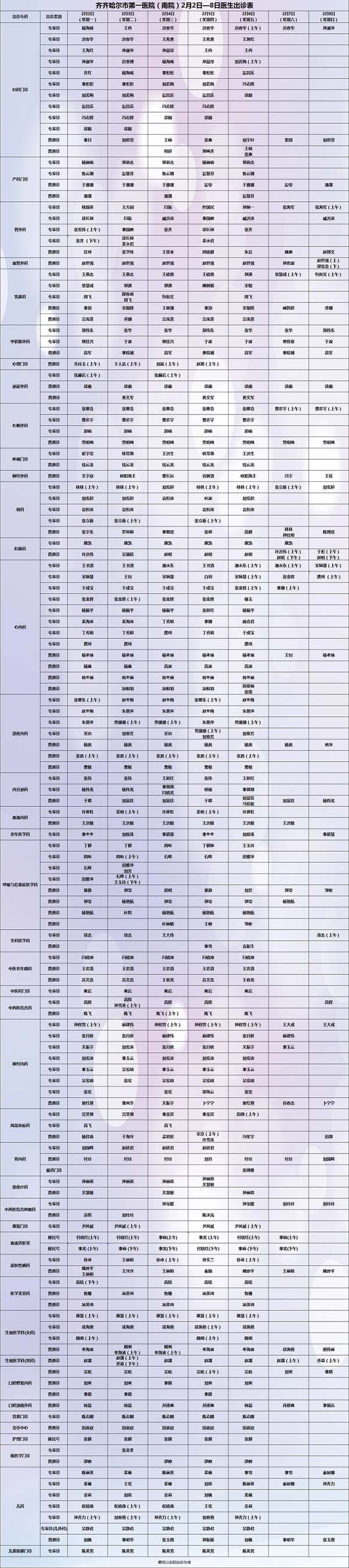 保障安全 护佑健康——齐齐哈尔市第一医院2月2日-2月8日出诊安排
