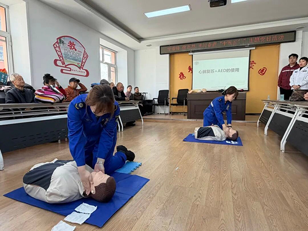 急救知识与技能培训环节,成为活动的一大亮点。市急救中心周莉圆、祝岩围绕《心肺复苏术讲解》《气道异物梗阻的急救方法》两大核心课程,结合真实案例,用生动通俗的语言,系统讲解急救核心知识与操作要点。讲师重点强调了心脏骤停“黄金4分钟”的重要性,分步演示心肺复苏的判断意识、呼救求援、胸外按压、开放气道、人工呼吸等规范流程,手把手示范按压深度、频率、手势等关键细节;针对气道异物梗阻,详细讲解不同人群的海姆立克急救法操作技巧,通过模拟演示与实景互动,让居民直观掌握急救要领。
