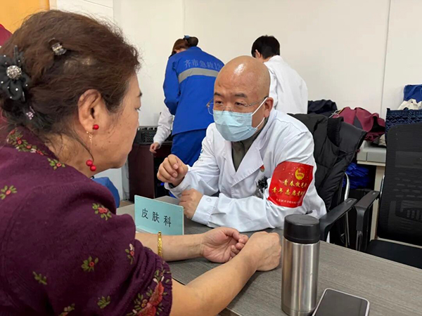 义诊现场暖意融融,前来咨询、问诊的居民络绎不绝。来自我院南院皮肤科魏烨平、邢英楠,南院呼吸三科郭莹,康复医学科辛春辉等科室的青年骨干志愿者,耐心为居民测量血压、血糖,细致询问病史、解读体检报告,针对呼吸系统、皮肤、骨折术后康复等提供个性化诊疗建议、用药指导与健康生活方式干预。志愿者们用通俗易懂的语言解答居民疑问,叮嘱日常注意事项,对需要进一步检查治疗的居民,详细告知就诊流程与科室信息,让居民在家门口享受到便捷、专业、贴心的医疗服务。一位老年居民感慨道:“不用跑医院,专家就来到社区,看病问药都方便,真是把温暖送到了我们心坎里!”