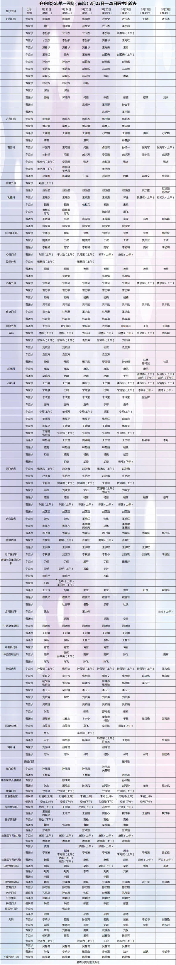 保障安全 护佑健康——齐齐哈尔市第一医院3月23日-3月29日出诊安排