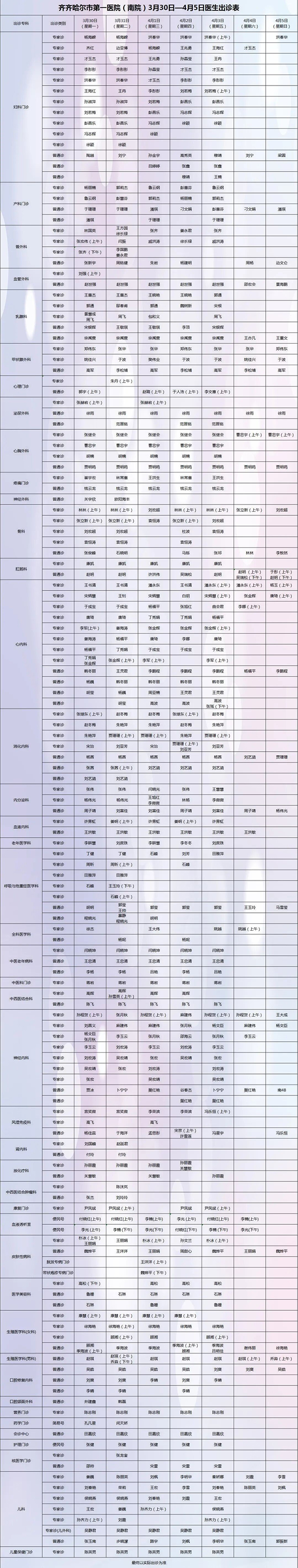 保障安全 护佑健康——齐齐哈尔市第一医院3月30日-4月5日出诊安排