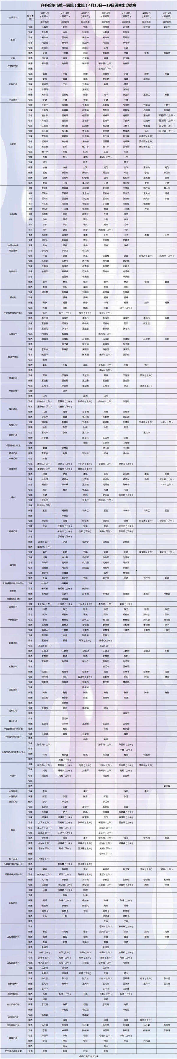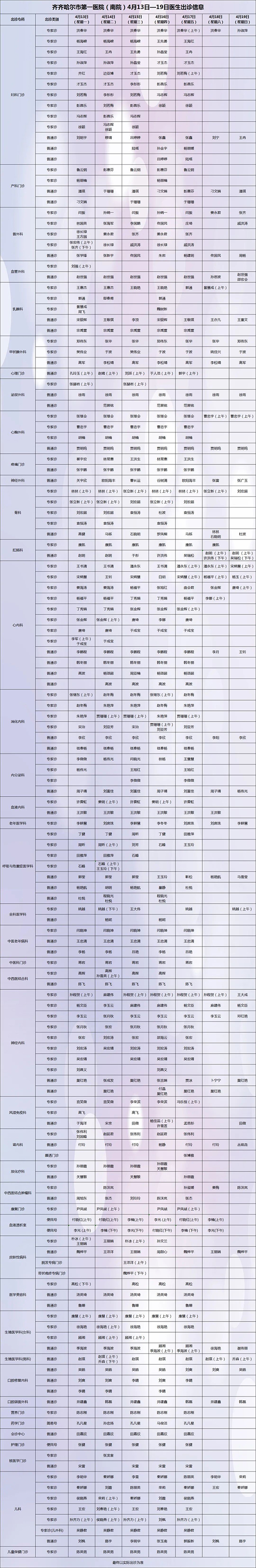 保障安全 护佑健康——齐齐哈尔市第一医院4月13日-4月19日出诊安排