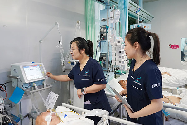 科系重点打造多器官功能支持、严重感染与脓毒症救治、重症营养、重症呼吸衰竭治疗四大特色亚专科,聚焦心肺功能支持、多器官功能维护、严重创伤救治等核心领域,在复杂危重病例综合管理方面形成鲜明优势。同时,由卢丽主任团队负责的全市首个以神经外科、心血管为核心的重症监护单元(NICU&CCU),聚焦神经重症、心血管重症及多器官功能衰竭患者的集中监护、抢救与综合治疗,打造区域内心脑血管急危重症救治的核心阵地,率先开展多项区域领先的重症救治技术,构建了覆盖神经、心血管重症全周期的诊疗体系。依托重症医学专业优势,打造“患者入科至手术室20分钟快速围手术期绿色通道”,不仅大幅缩短心脑血管急危重症患者救治时间、显著提升抢救成功率,还有效提升了科室介入手术年度总量,为介入手术围手术期安全提供坚实保障,为各类风险心脑血管介入手术顺利实施保驾护航。