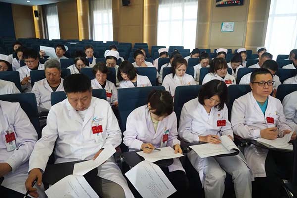 下午13时30分,大会在庄严的国歌声中拉开帷幕。第一医院党委专职副书记张军主持开幕式,市卫健委机关党委专职副书记于群出席会议。