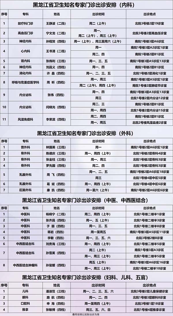 保障安全 护佑健康——齐齐哈尔市第一医院11月10日-11月16日出诊安排