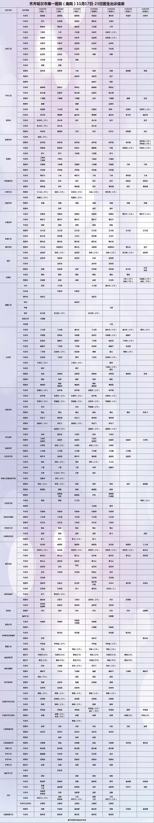 保障安全 护佑健康——齐齐哈尔市第一医院11月17日-11月23日出诊安排