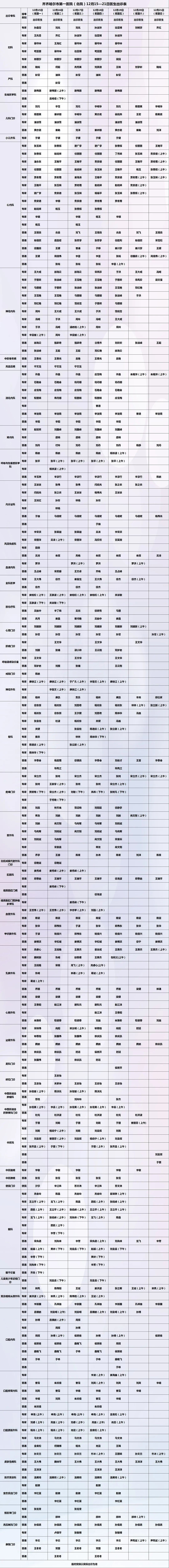 保障安全 护佑健康——齐齐哈尔市第一医院12月15日-12月21日出诊安排