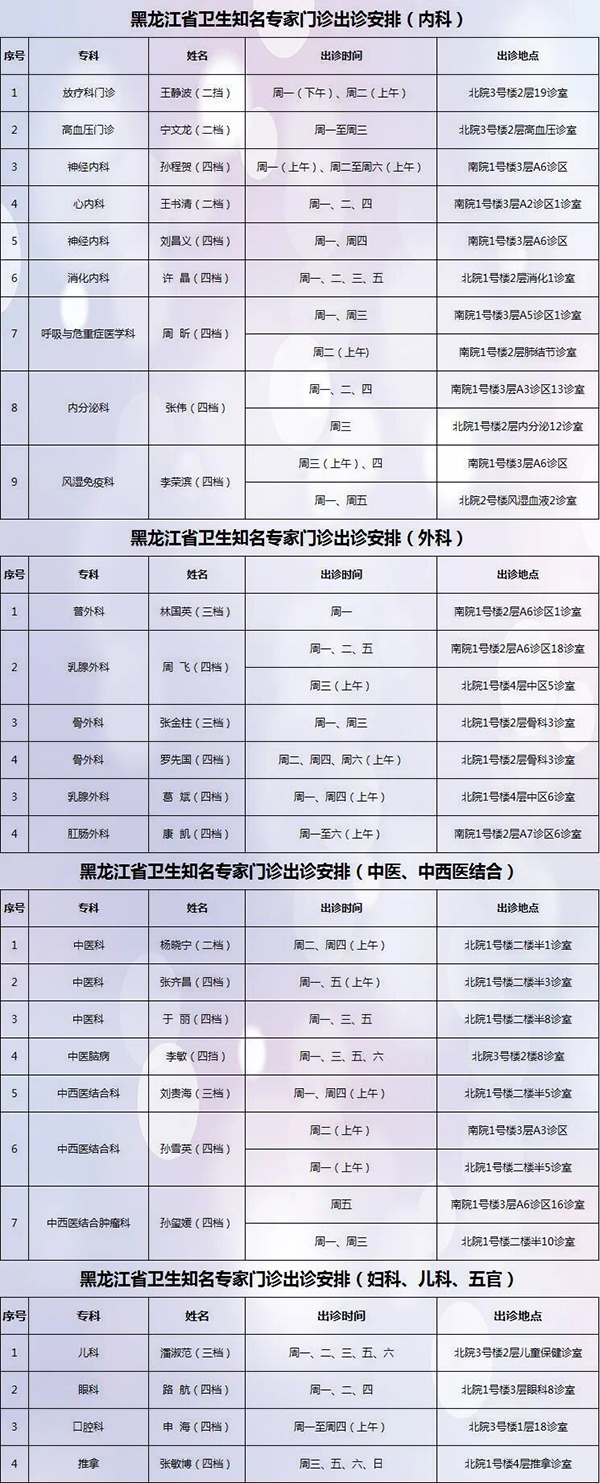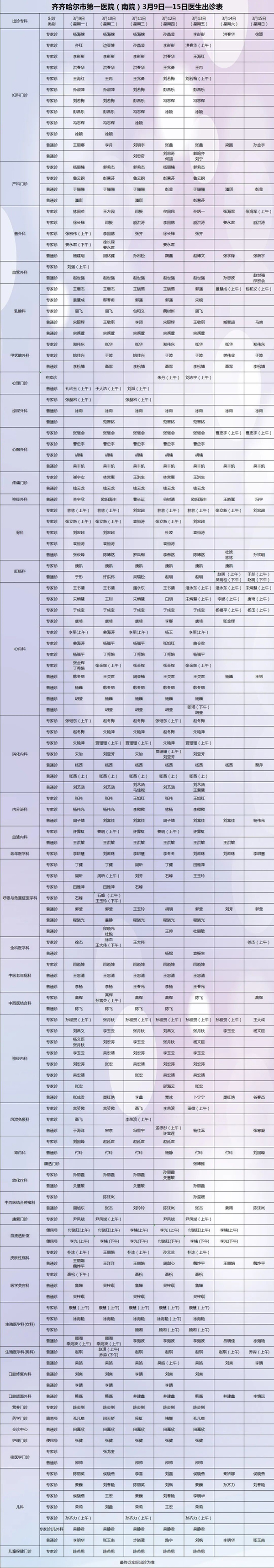 保障安全 护佑健康——齐齐哈尔市第一医院3月9日-3月15日出诊安排