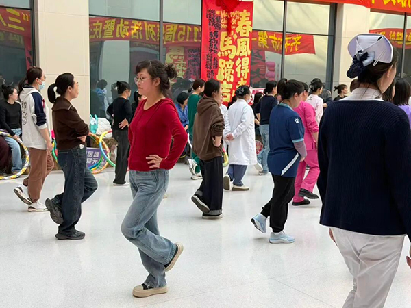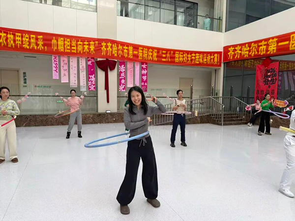3月6日下午,医院南院门诊阳光天井内欢声笑语、热闹非凡,庆祝“三八”节趣味运动比赛火热开赛。踢毽子、摇呼啦圈、单腿站立等兼具趣味性与互动性的比赛项目,吸引了来自医院各科室的三百余名女职工踊跃参与。赛场上,她们身姿矫健、各展所长;赛场下,加油声、喝彩声、欢笑声此起彼伏,汇成一片欢乐的海洋。大家在竞技与互动中尽享运动乐趣,充分展现出第一医院女性医务工作者健康阳光、积极向上、奋勇拼搏的精神风貌。经过激烈角逐,各项目优胜者脱颖而出,比赛在和谐欢乐的氛围中圆满落幕。