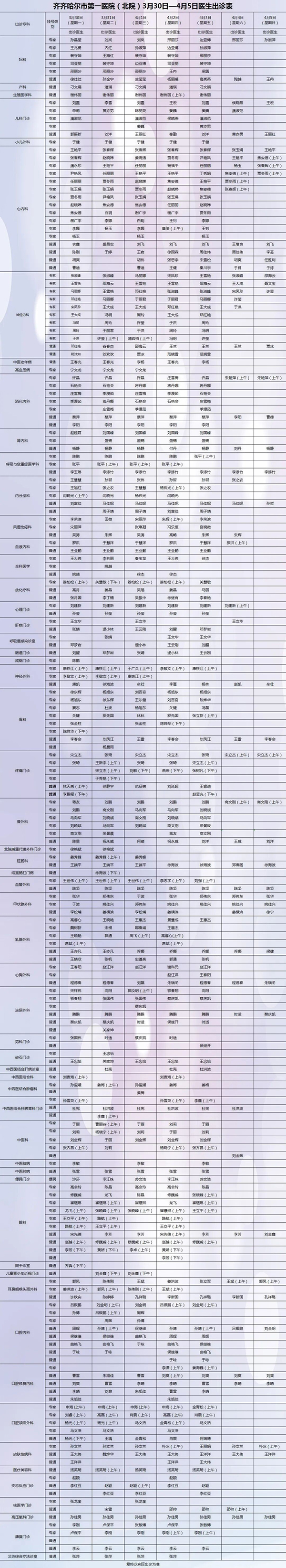 保障安全 护佑健康——齐齐哈尔市第一医院3月30日-4月5日出诊安排