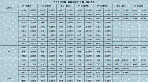 为向广大百姓提供便捷、优质、高效的医疗服务,保障其就诊安全,齐齐哈尔市第一医院南院现作出如下出诊安排,敬请知悉。