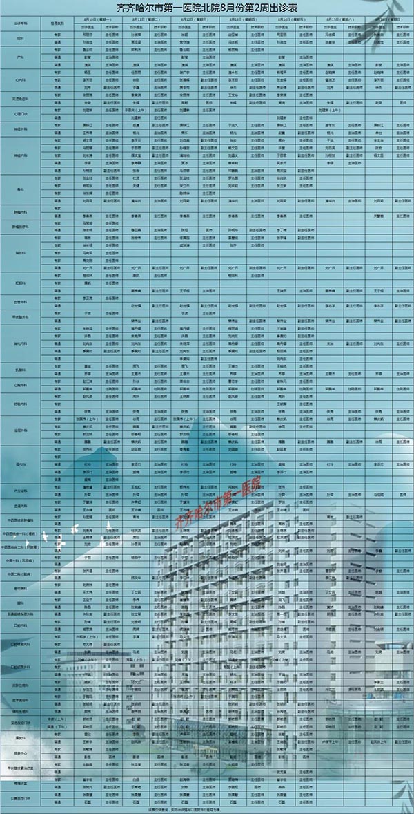 为向广大百姓提供便捷、优质、高效的医疗服务,保障其就诊安全,齐齐哈尔市第一医院现作出如下出诊安排(含南北两院区),敬请知悉。