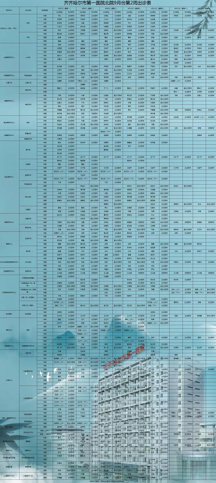 为向广大百姓提供便捷、优质、高效的医疗服务,保障其就诊安全,齐齐哈尔市第一医院现作出如下出诊安排(含南北两院区),敬请知悉。
