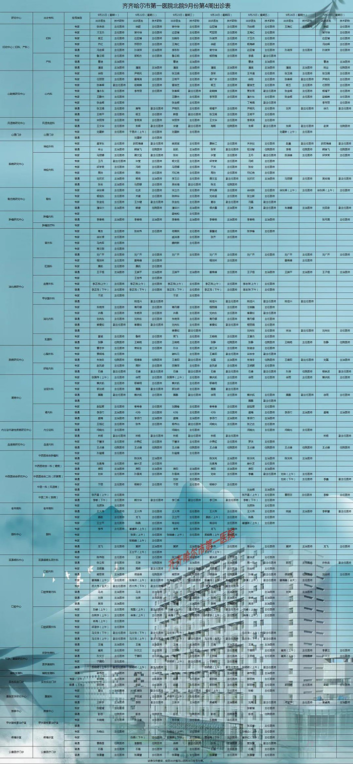 为向广大百姓提供便捷、优质、高效的医疗服务,保障其就诊安全,齐齐哈尔市第一医院现作出如下出诊安排(含南北两院区),敬请知悉。