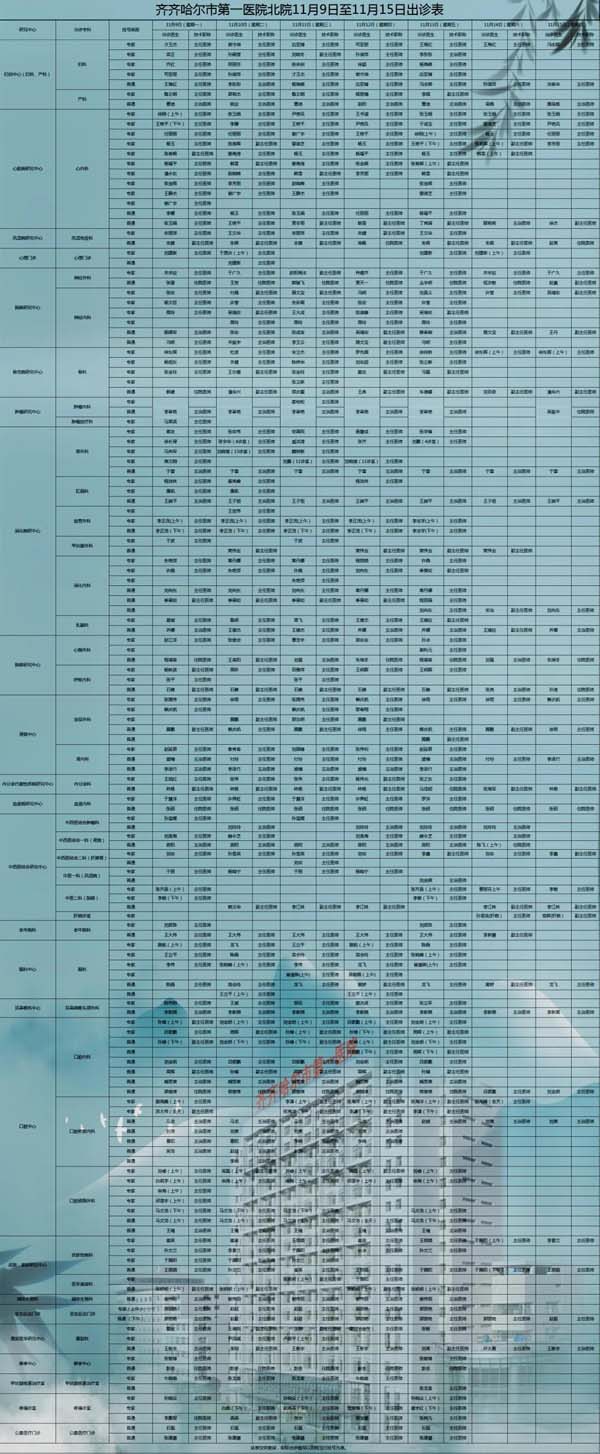 为向广大百姓提供便捷、优质、高效的医疗服务,保障其就诊安全,齐齐哈尔市第一医院现作出如下出诊安排(含南北两院区),敬请知悉。