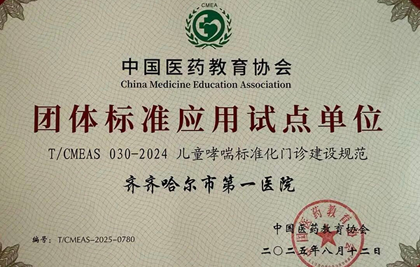 聚焦儿童呼吸健康 打造专科新标杆——齐齐哈尔市第一医院被授予“儿童哮喘标准化门诊建设规范”团体标准应用…